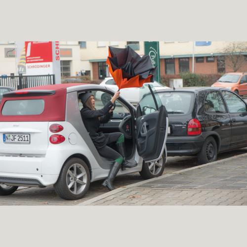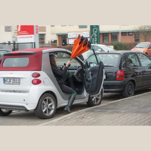 This umbrella is different, that is for sure, and so will be your promotion, it is also easier to get into your car on a rainy day!