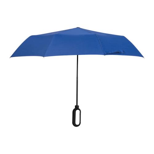 Pocket umbrella made of 190T pongee with special handle in carabiner shape.