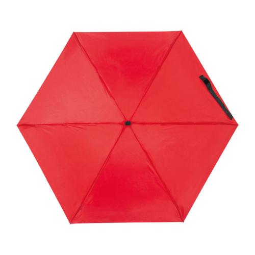 190T polyester mini umbrella packed in an EVA zippered pouch, for easy carrying.