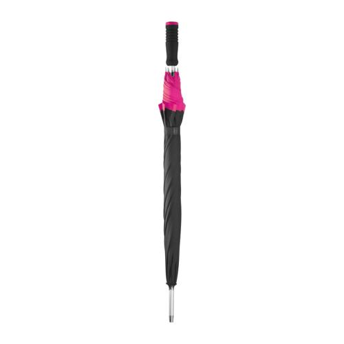 Elegant automatic umbrella made of pongee with comfortable soft grip. The seam and the lower part of the grip are accentuated in trendy colours.
