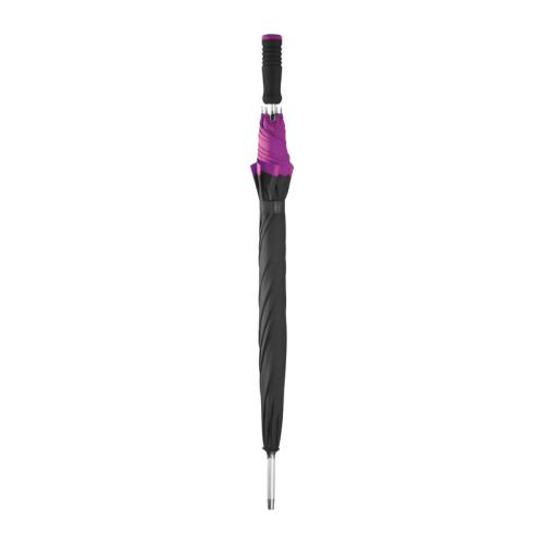 Elegant automatic umbrella made of pongee with comfortable soft grip. The seam and the lower part of the grip are accentuated in trendy colours.