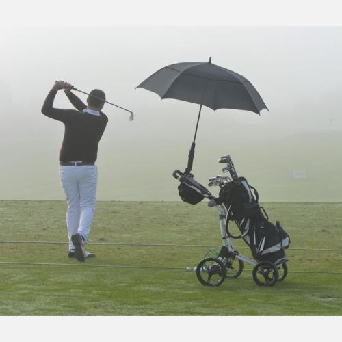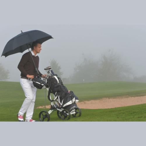 Golf umbrella with windscreen in XXL format made of pongee, suitable for all popular golf trolleys. Golf adventure in any weather!
