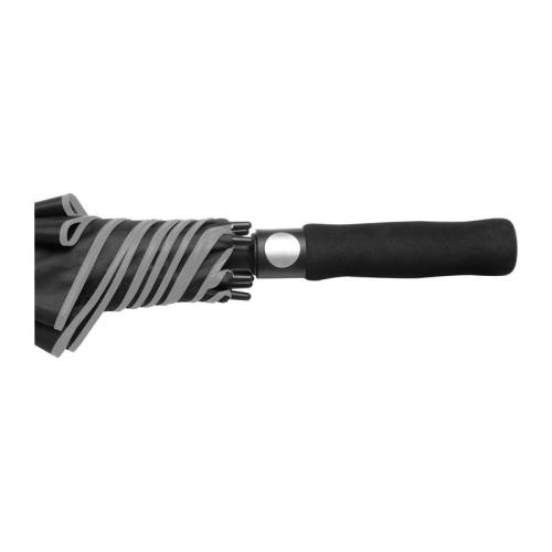 Black stick umbrella made of 190T pongee with coloured edge, automatic opening and fibreglass poles.