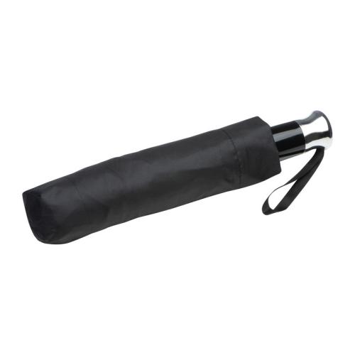 High-quality pocket umbrella made of 190T pongee with black fibreglass shaft, elegant handle and matching case. Automatic opening and closing by pressing the button on the handle.