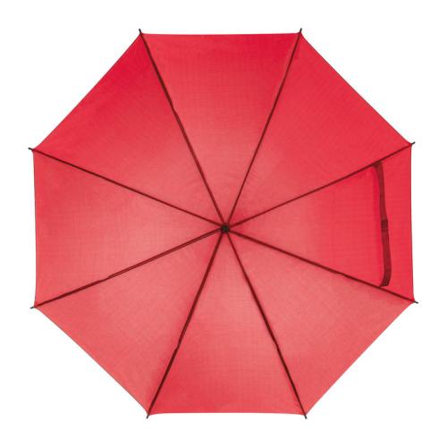 Automatic walking-stick umbrella with wooden handle and metal tops.