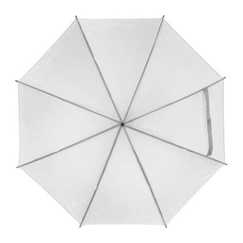 Automatic walking-stick umbrella with wooden handle and metal tops.