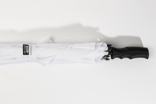 Large size, automatic windproof square umbrella with full fibreglass shaft and frame, rubberized ABS handle. 190T RPET pongee. With distinctive RPET label.
