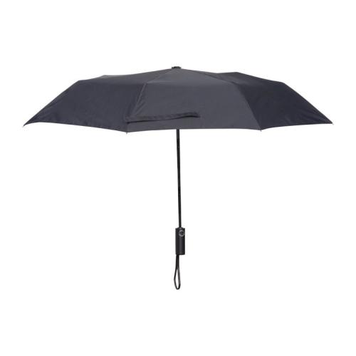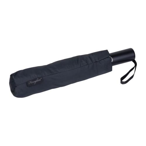 Storm-proof automatic pocket umbrella from Ferraghini with fiberglass frame, material is 260T polyester pongee. Handle with soft rubberized finish and engraved “F” on the handle base.