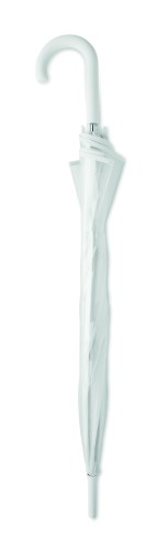 23 inch straight umbrella in POE with piping and 1 panel in polyester for printing area. Manual open. Fiberglass, ribs and frame. Chrome plated shaft with plastic tips. Rubber finished handle.