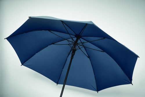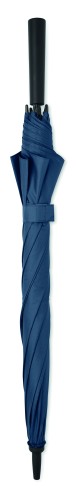 23 inch auto open windproof umbrella in 190T pongee with fiberglass frame and black plated shaft and plastic tips. ABS handle with rubber finish. Manual closure.