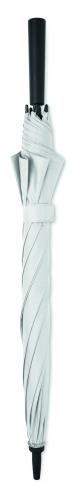 23 inch auto open windproof umbrella in 190T pongee with fiberglass frame and black plated shaft and plastic tips. ABS handle with rubber finish. Manual closure.