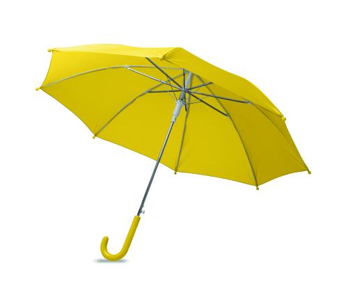 18 inch kids auto open umbrella. Metal shaft and ribs, 190T polyester. Handle, tips and top in PP.