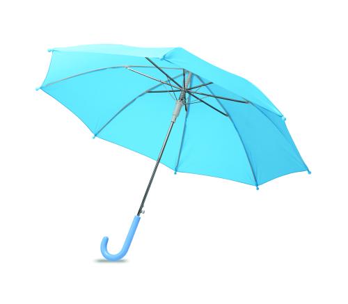 18 inch kids auto open umbrella. Metal shaft and ribs, 190T polyester. Handle, tips and top in PP.