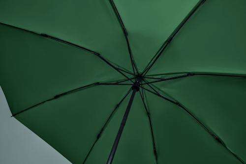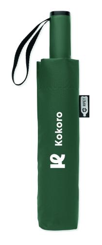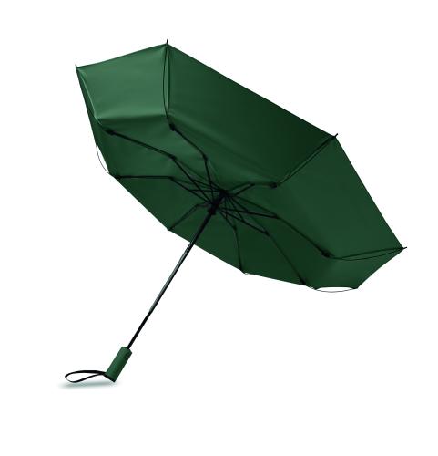 23-inch 3-fold reverse windproof umbrella made of 190T RPET pongee and matching pouch. Auto open and close, full black plating frame, fibreglass ribs, and a rubber-finished ABS handle.