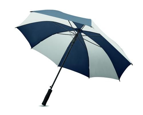 27 inch auto open umbrella in 190T pongee with black plated metal shaft and ribs. Black plastic tips. Straight black EVA handle. Manual closure.