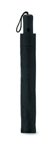 21 inch 2 fold auto open umbrella in 190T pongee with zinc plated steel shaft, ribs and tips. Black rubberised ABS handle. Includes matching pouch. Manual closure.