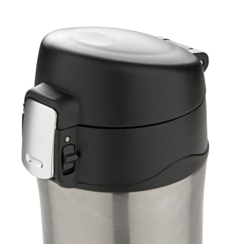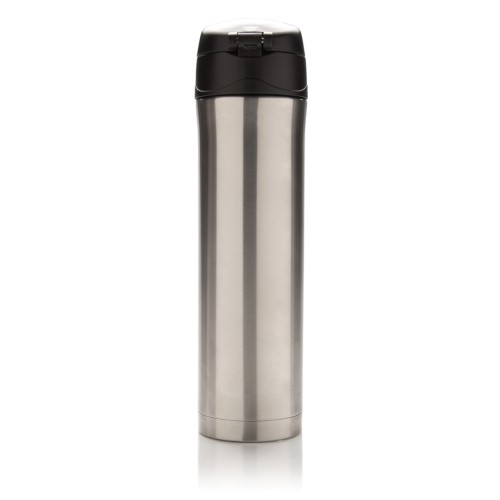 This great double wall stainless steel vacuum flask keeps your drink warm for up to 5 hours or cool for up to 15 hours. The lid is lockable and therefore avoids any risk of leaking or spilling. The lid is easy to keep clean for optimal hygiene and is dishwasher safe. The unique design of the flask allows you to drink conveniently and safely with one hand directly from the flask. The size of the flask is suitable to place in any car drink holder. Made with RCS (Recycled Claim Standard) certified recycled materials. RCS certification ensures a completely certified supply chain of the recycled materials. Total recycled content: 76% based on total item weight. BPA free. Capacity 450ml. Including FSC®-certified kraft packaging.