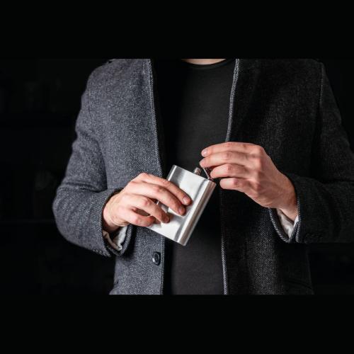 Stainless metal hip flask, 237 ml