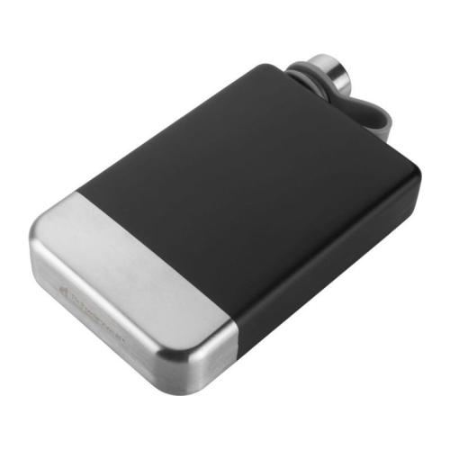 Schwarzwolf hip flask set. The flask is made of stainless steel with a smooth black coating. The set include 4 cups (30 ml) that comes in black pouch and a funnel. The Schwarzwolf logo is placed on the bottom of the flask. Packed in a gift box.