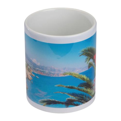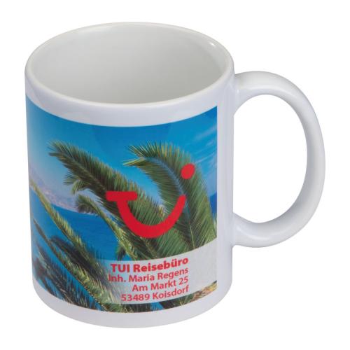 Sublimation mug (plastic-laminated ceramics) with 300ml capacity in classical style.