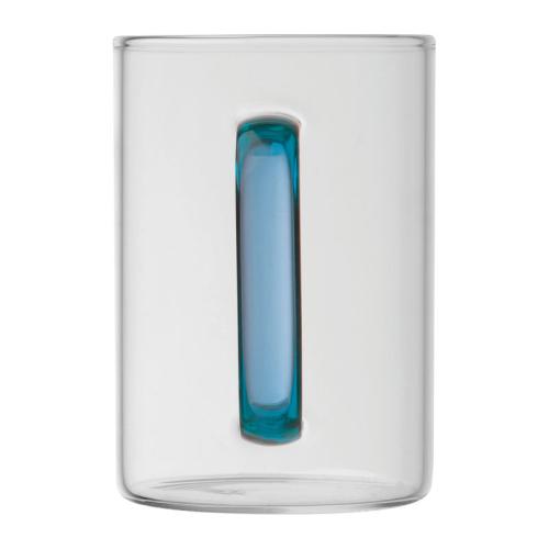 Glass mug with coloured handle and a capacity of 250 ml.