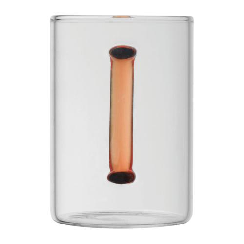 Glass mug with coloured handle and a capacity of 250 ml.