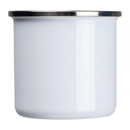 Retro cup made of enamel has a capacity of 300 ml. The cup can be finished allover in sublimation printing, photo prints are also possible.