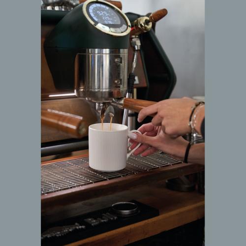 Large ceramic mug with a fluted pattern and a capacity of 400ml.