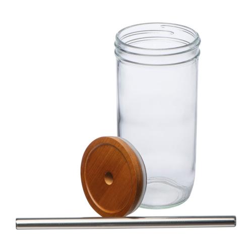 Glass mug with bamboo lid, stainless steel straw and a capacity of 650ml. Ideal for coffee, bubble tea and much more.