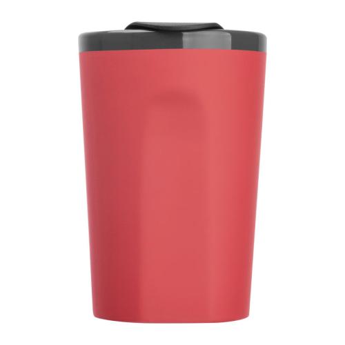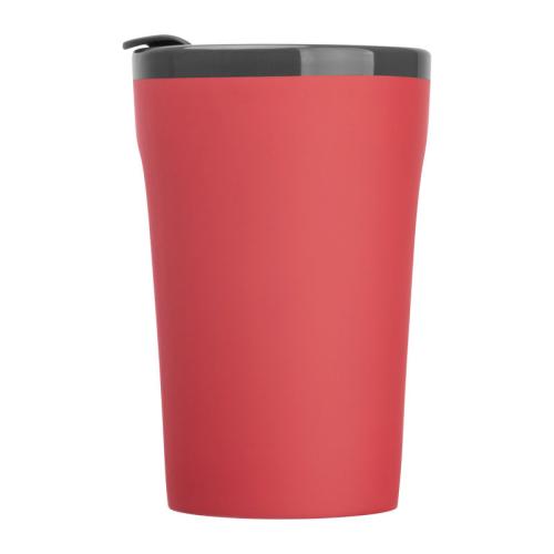 Rubberized travel ceramic cup with 400ml capacity and sliding lid.