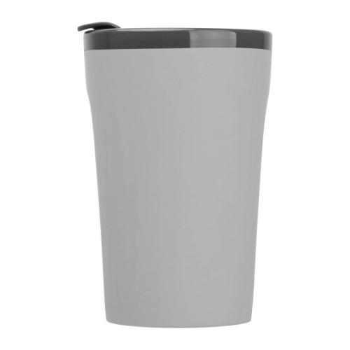 Rubberized travel ceramic cup with 400ml capacity and sliding lid.