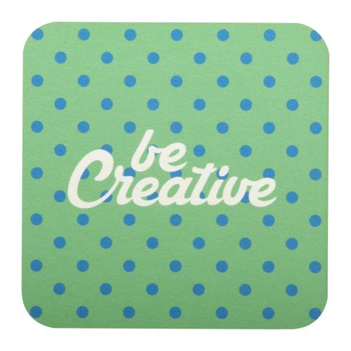 Custom made, absorbent paper coaster with custom graphics on one side. MOQ: 250 pcs.