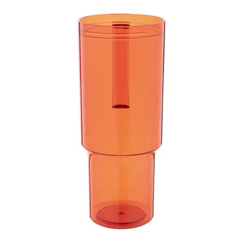 Single-wall, RPET travel mug with matching colour PP drinking lid and straw. 1200 ml.