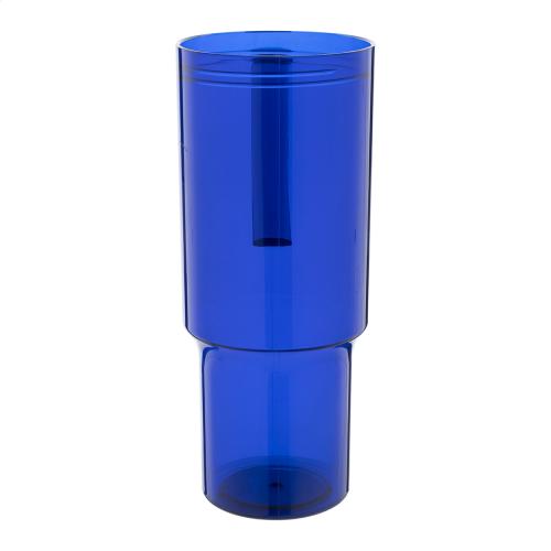Single-wall, RPET travel mug with matching colour PP drinking lid and straw. 1200 ml.