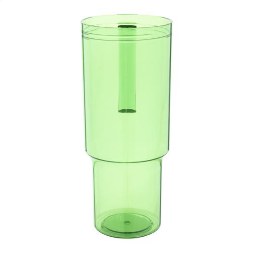 Single-wall, RPET travel mug with matching colour PP drinking lid and straw. 1200 ml.