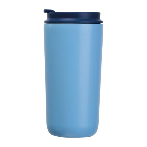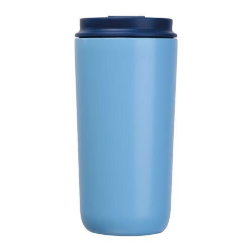 Set consisting of a notebook with 192 lined pages (96 sheets, A5, 100 g/m², recycled paper, PU cover with bookmark, rubber strap), a 500 ml stainless steel cup (leak-proof), and a high-quality aluminium twist ballpoint pen with blue ink.