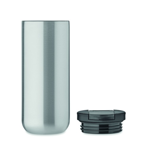 Double wall Stainless Steel insulating vacuum bottle with lid. Capacity 330 ml. Leak free.
