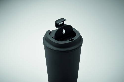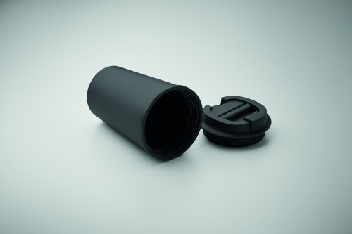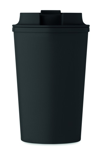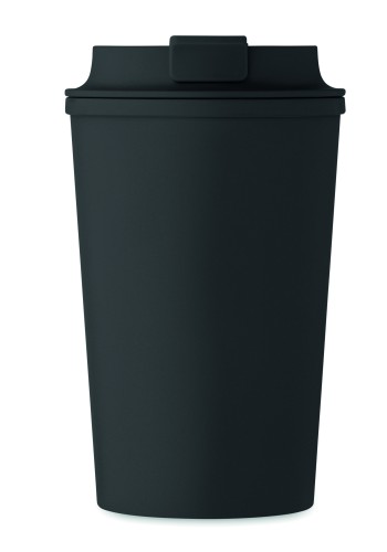 Double wall tumbler in 100% PLA corn with PP drinking lid with inner TPR. Leak free. Capacity: 350 ml.