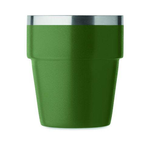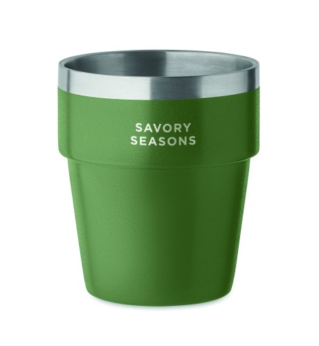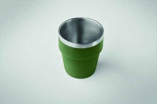 Double wall tumbler in recycled stainless (90% recycled stainless steel and 10% stainless steel) Stackable. Capacity: 250 ml.