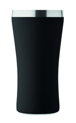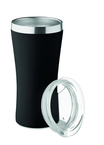 Small double wall vacuum insulated tumbler in recycled stainless steel (90% recycled stainless steel and 10% stainless steel) with drinking hole in the lid in transparent PP. Capacity: 160 ml.