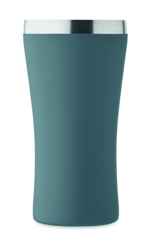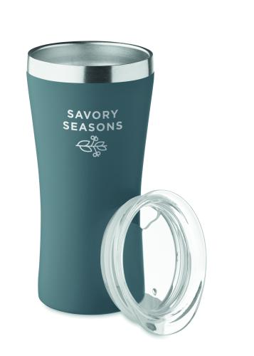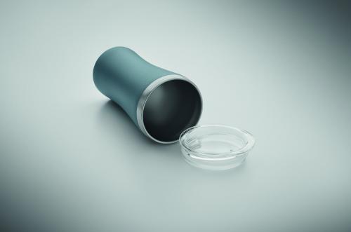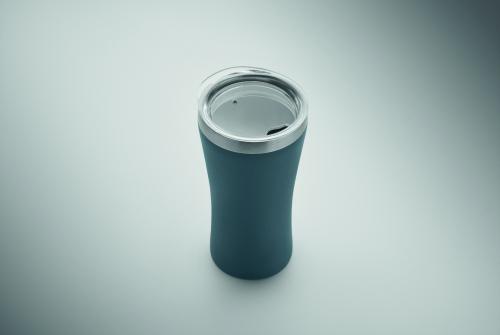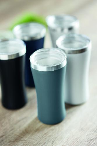 Small double wall vacuum insulated tumbler in recycled stainless steel (90% recycled stainless steel and 10% stainless steel) with drinking hole in the lid in transparent PP. Capacity: 160 ml.