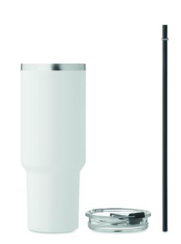 Double wall vacuum insulated recycled stainless steel tumbler (90% recycled stainless and 10% stainless steel) with straw lid including PE straw. Capacity 1200 ml.