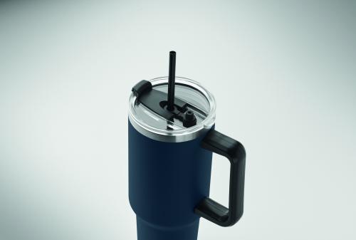Double wall vacuum insulated recycled stainless steel tumbler (90% recycled stainless and 10% stainless steel) with straw lid including PE straw. Capacity 1200 ml.