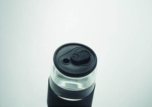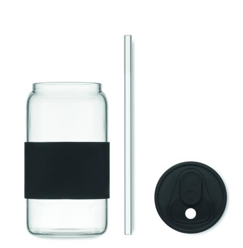 High borosilicate glass tumbler with silicone lid and grip. Includes borosilicate glass straw. Capacity : 550 ml.