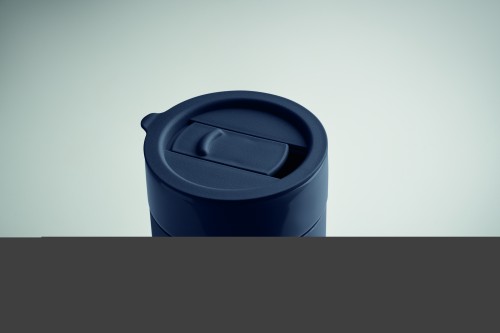 Ceramic tumbler with silicone sleeve and PP lid. Capacity: 330 ml.
