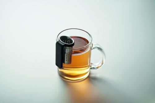 Tea infuser for loose leaf tea in stainless steel with PP hook.