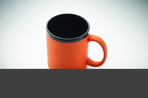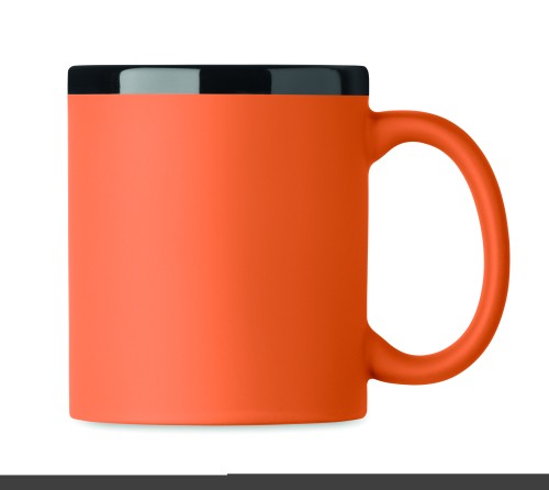 Ceramic mug with soft touch coating and black inside/rim. Suitable for engraving. Capacity: 300 ml. Individually packed in white carton box.