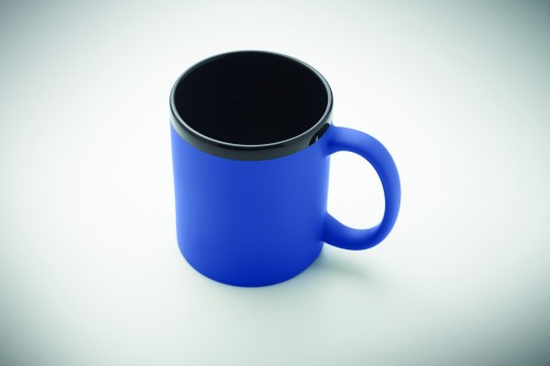 Ceramic mug with soft touch coating and black inside/rim. Suitable for engraving. Capacity: 300 ml. Individually packed in white carton box.
