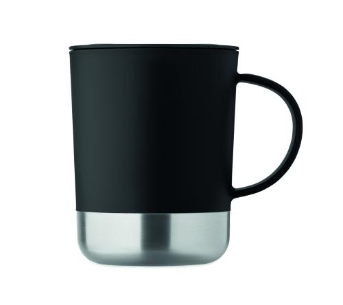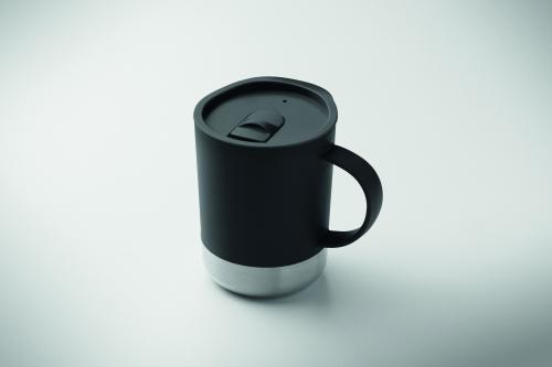 PP mug with recycled stainless steel base (90 % recycled stainless steel and 10% stainless steel) and PP sliding lid. Capacity: 300 ml.