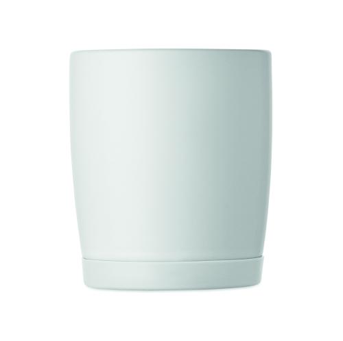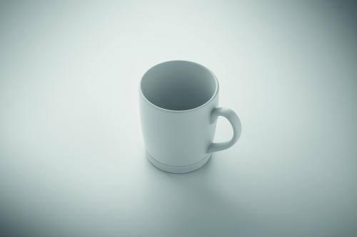 Ceramic mug with white matt finish and silicone base for stability. Capacity 300ml. Individual packing in white carton box.